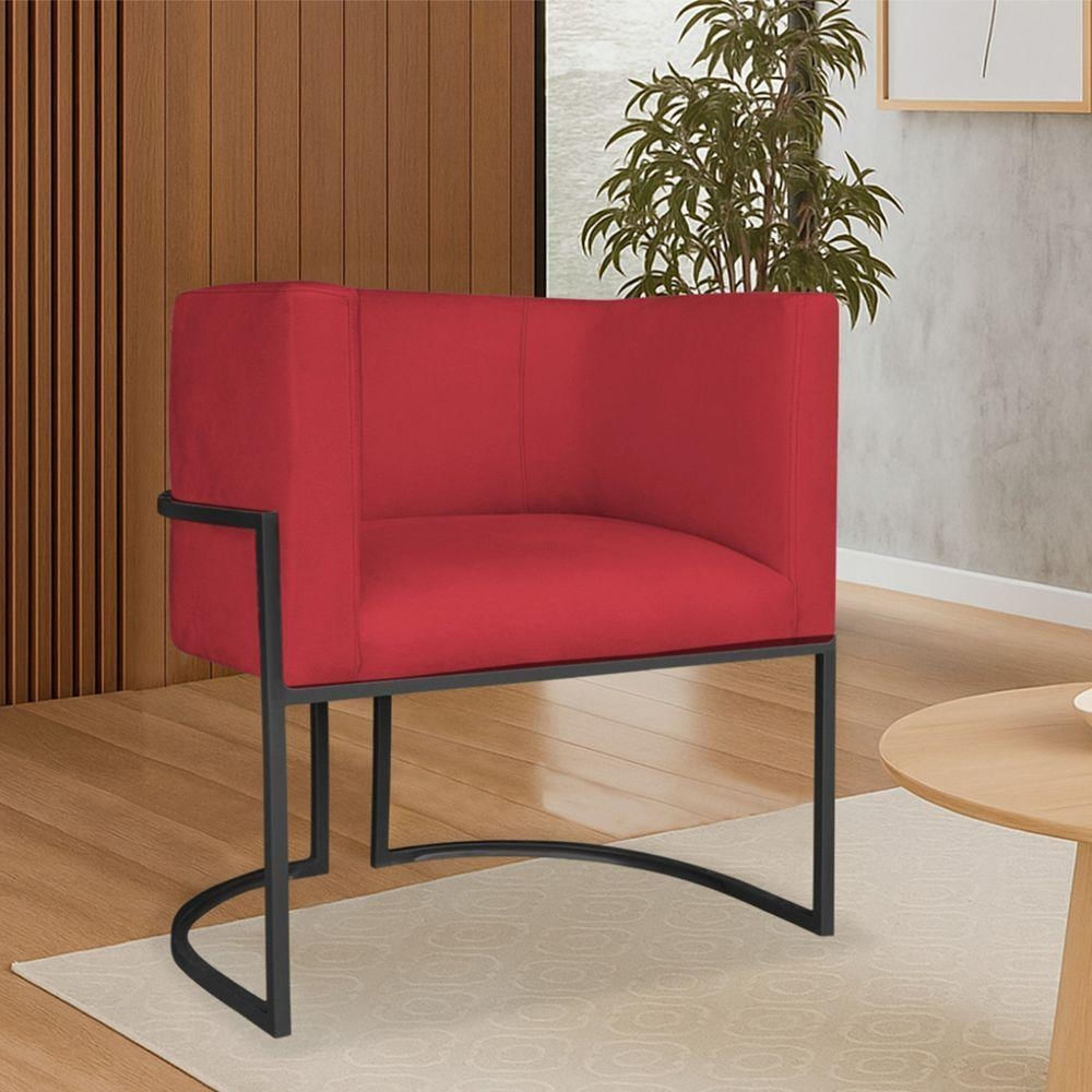 Poltrona Dália Luxo Moderna Estofada Design Sofisticado Com Base De Ferro Preto Suede Vermelho