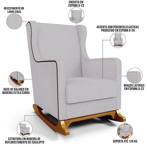Poltrona de Amamentação com Balanço Mavie L02 Linho Cinza - Lyam Decor