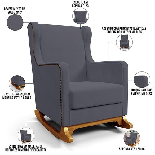 Projetada para oferecer conforto e praticidade em um dos mais momentos mais ublimes da maternidade, a Poltrona de Amamentação com Balanço Mavie, da Lyam Decor, é a esccolha perfeita já que combina um design moderno com uma experiênica inigualável de bem-estar. Isso graças aos materiais de qualidade que compõem a sua estrutura, como a madeira de eucalipto tratada e os pés balanço estilo canoa, que proporciona estabilidade e segurança. Além disso, o assento é tapeçado com espuma D-26 e o encosto e braças D-23, garantem uma amamentação tranquila e aconchegante, tanto para mãe quanto para o bebê.
