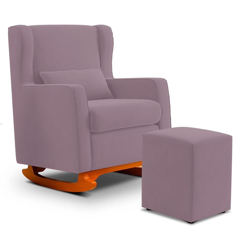 Poltrona de Amamentação e Descanso Zoe com Base Balanço e Puff Veludo Rosê - Desk Design
