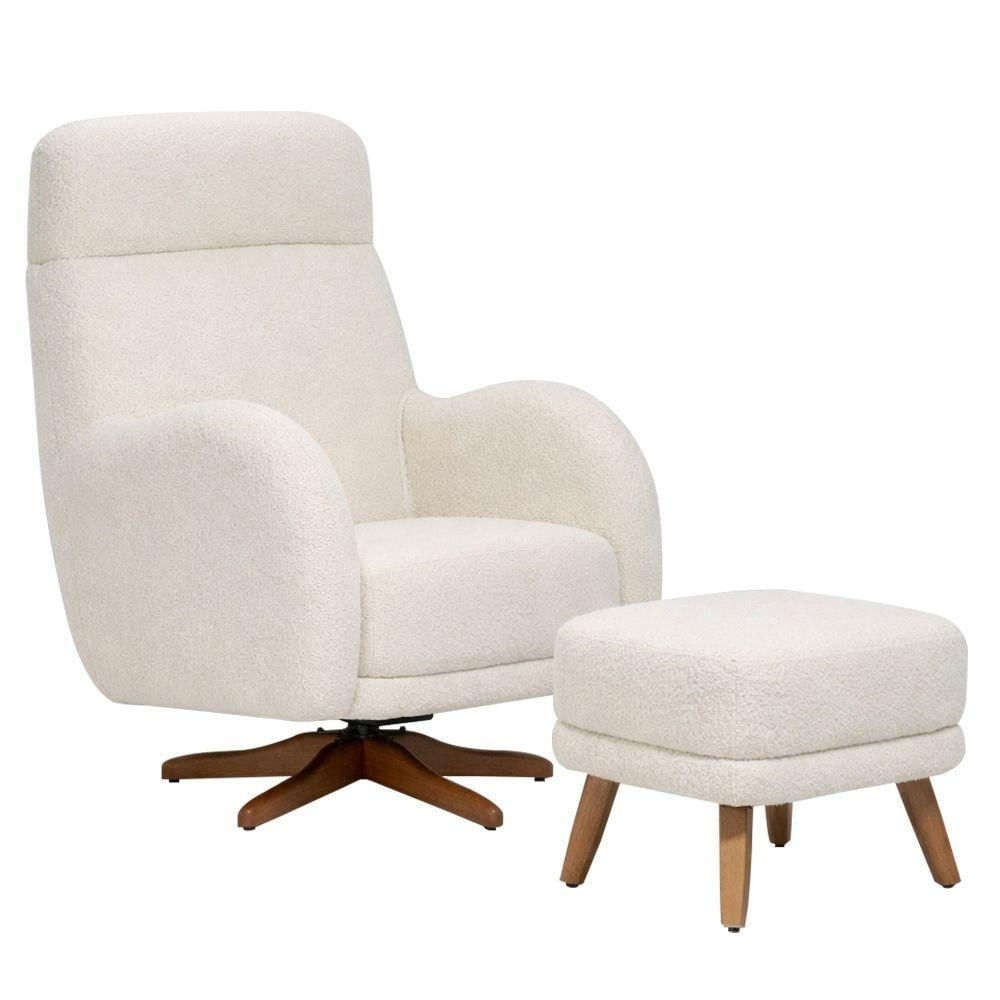 Poltrona De Amamentação Giratória Balanço E Puff Laura Bouclé Off White - Nexta Casa