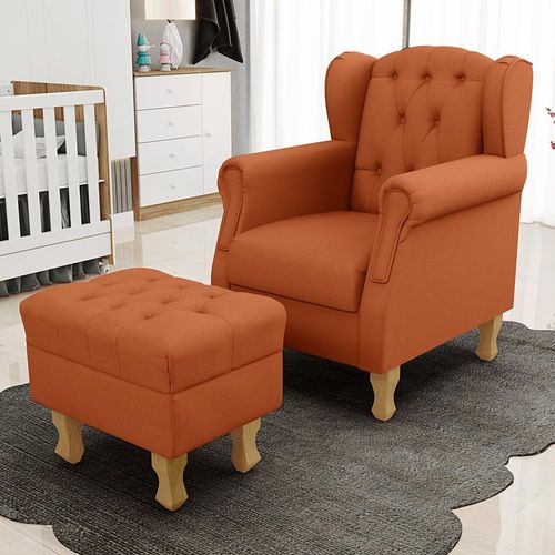 Poltrona De Amamentação Yara P02 Com Puff Paris L02 Tecido Terracota - Lyam Decor