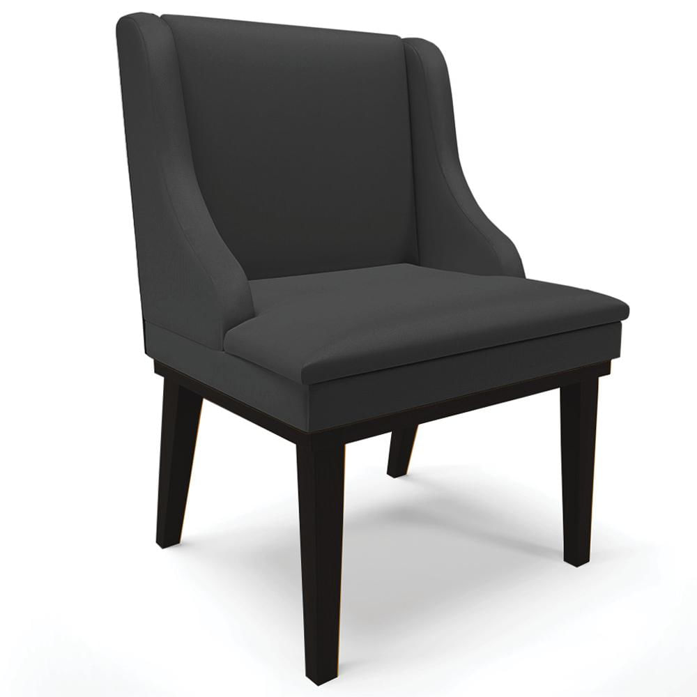 Poltrona Decorativa Base Fixa de Madeira Firenze PU Preto Fosco - Gran Belo