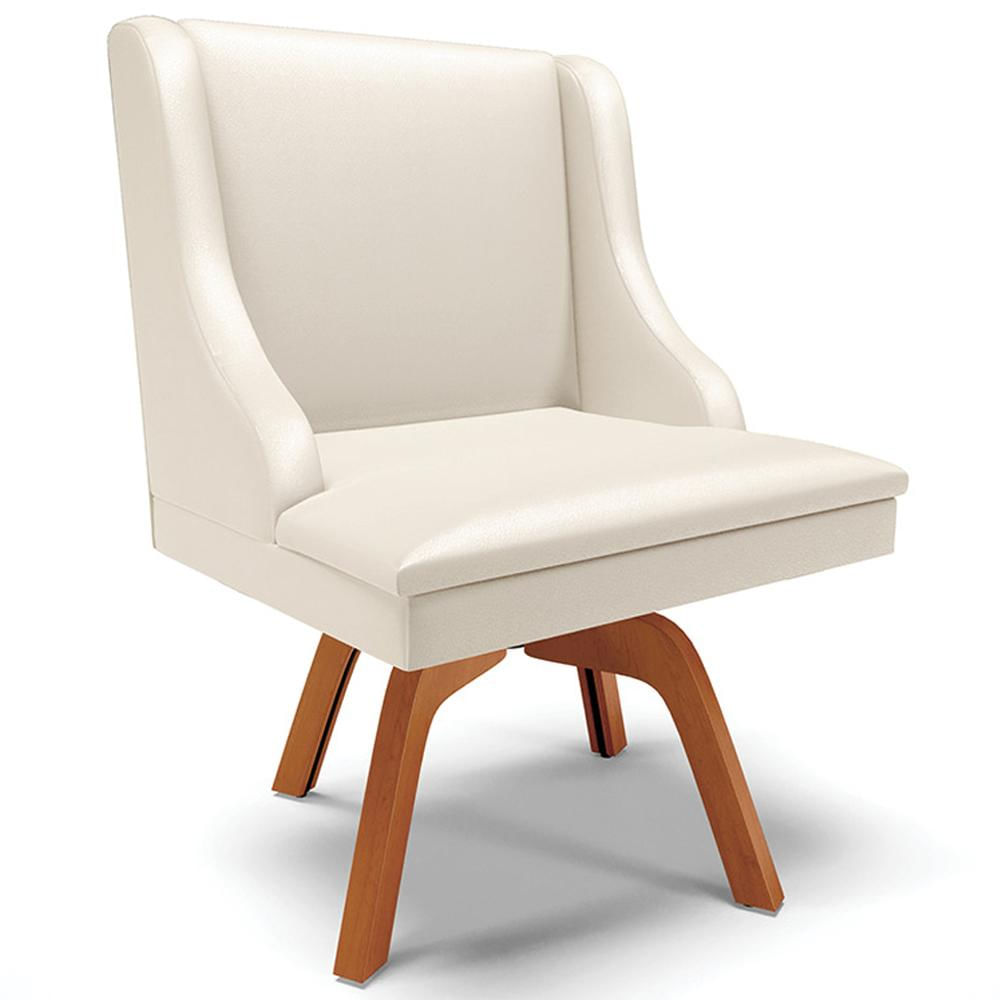 Poltrona Decorativa Base Giratória de Madeira Firenze PU Bege/Natural - Gran Belo