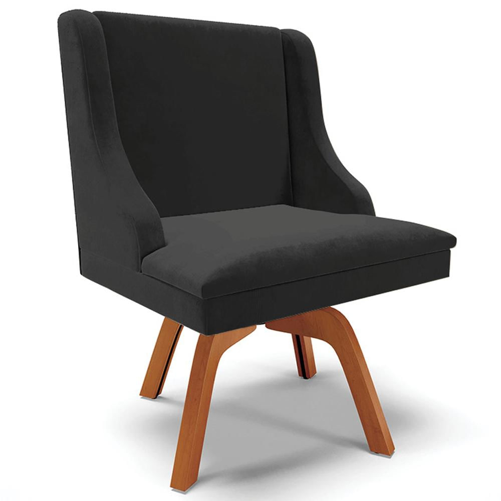 Poltrona Decorativa Base Giratória de Madeira Firenze Veludo Preto/Natural - Gran Belo