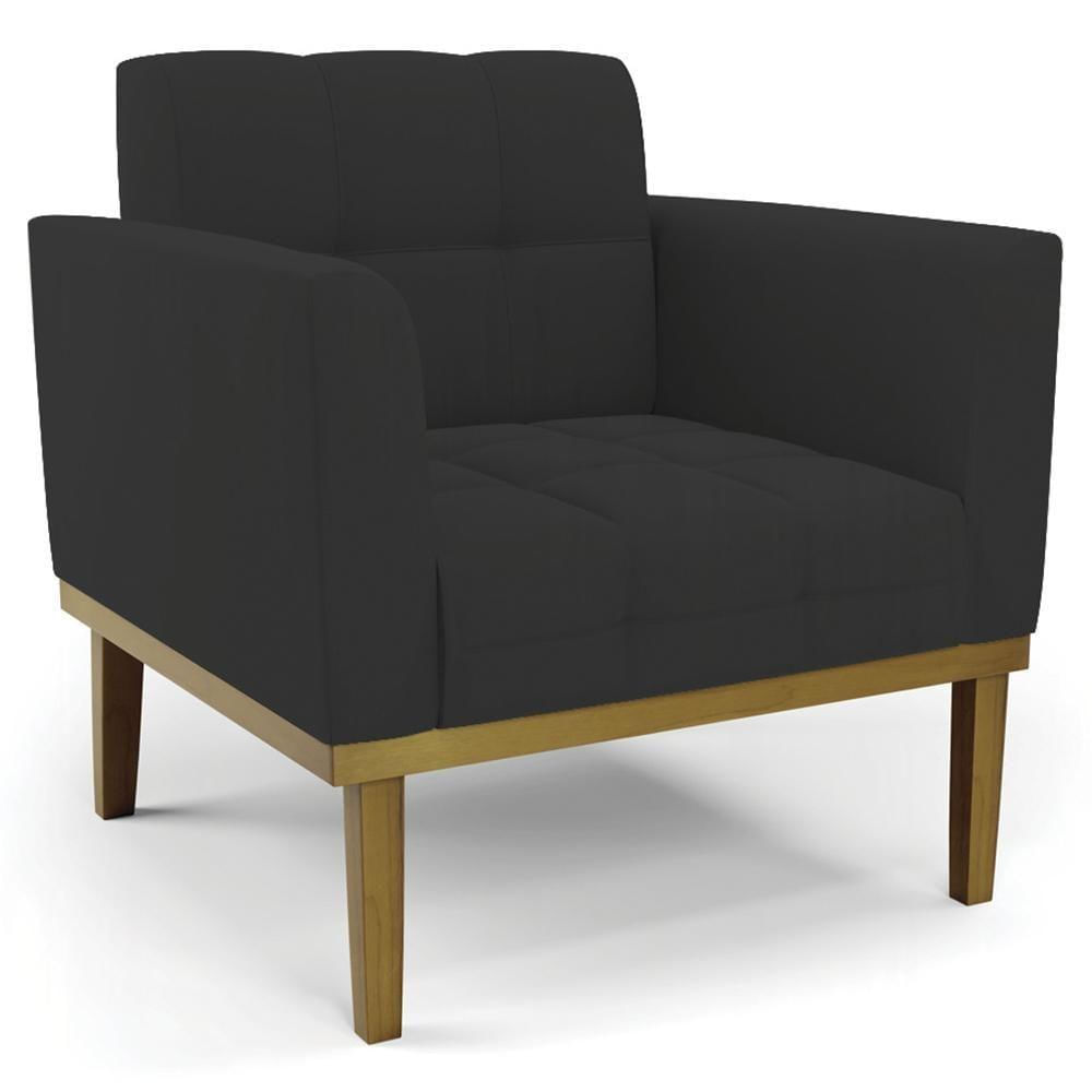 Poltrona Decorativa Base Madeira Castanho Ana Veludo Preto- Ibiza