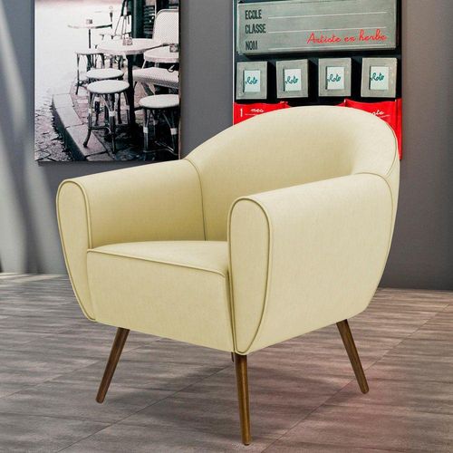 Poltrona Decorativa com Pés Palito Nina D02 Corano Bege C-26 - Lyam Decor