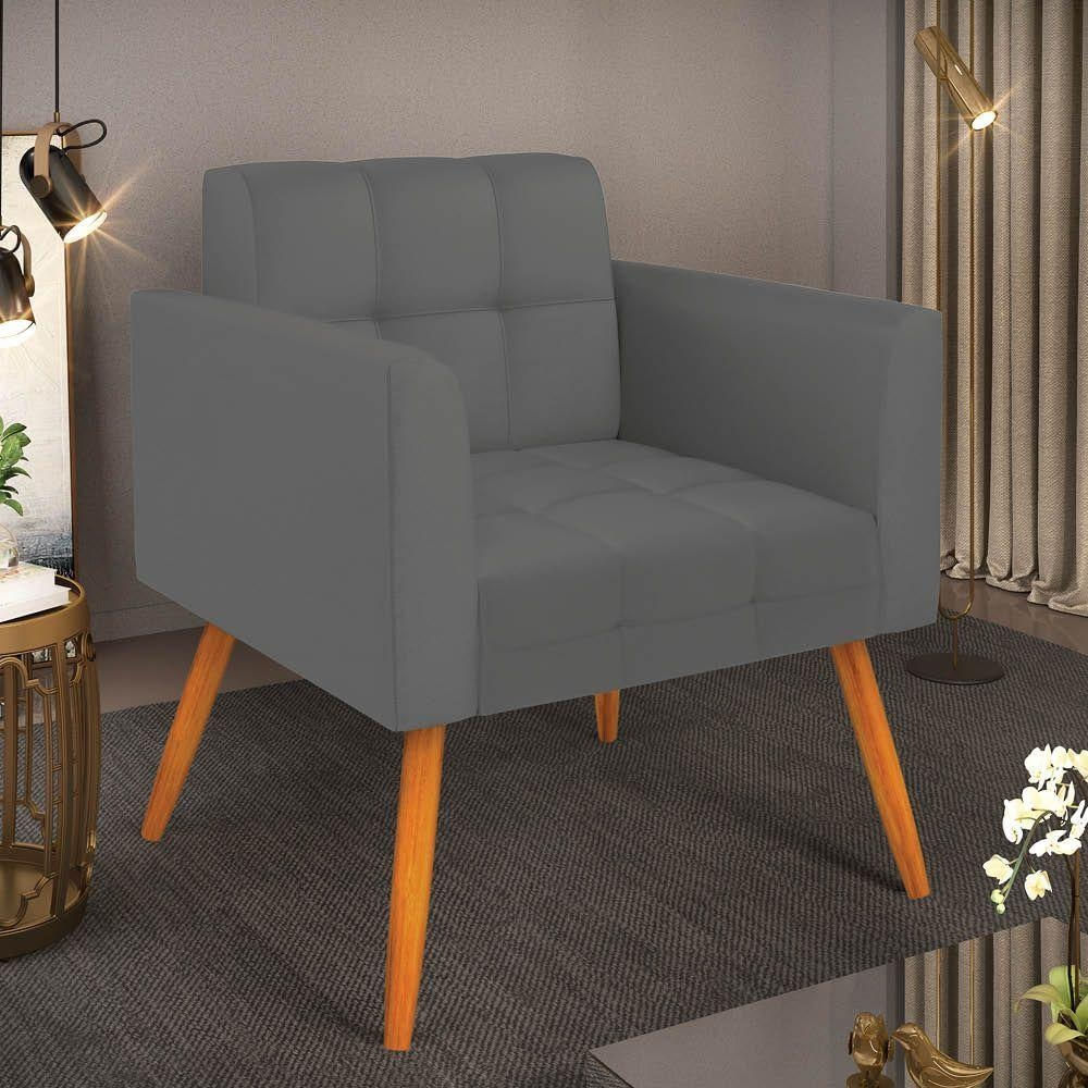 Poltrona Decorativa Elisa Sala Sintético Grafite Pés Palito Castanho D'Rossi