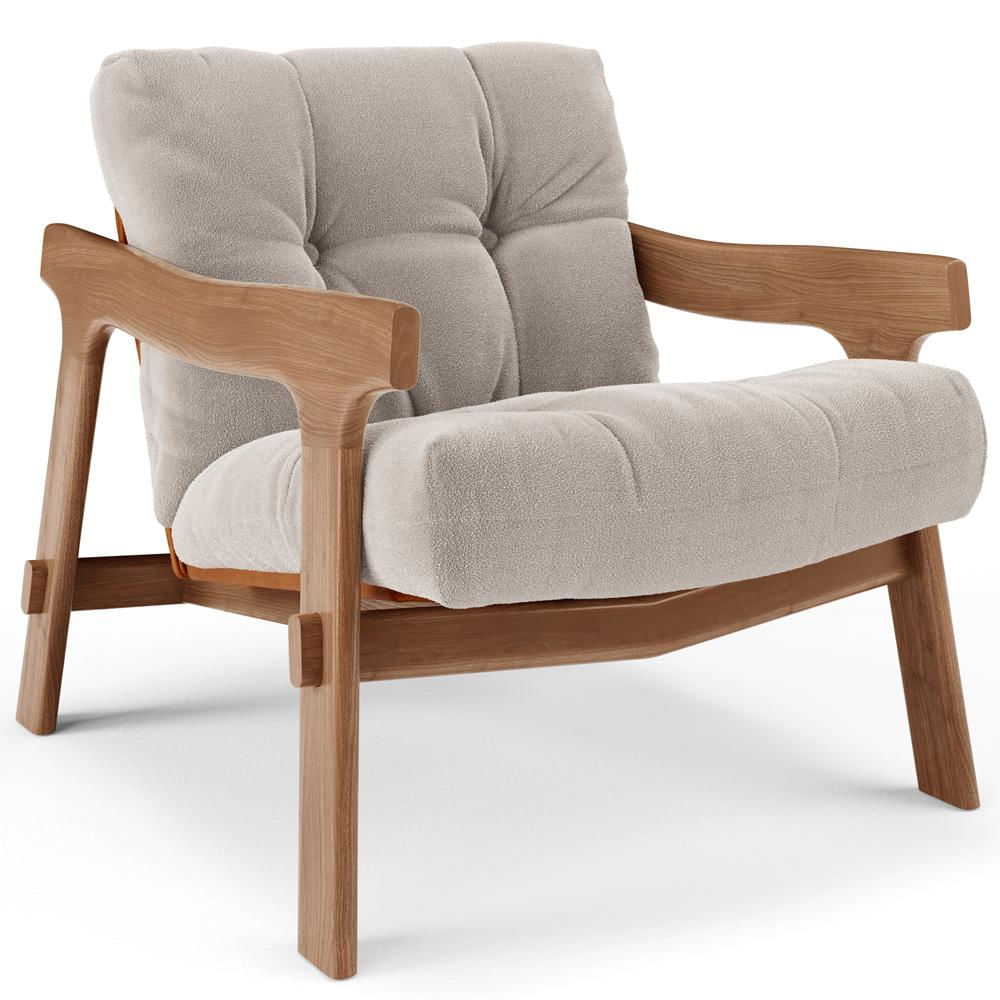 Poltrona Decorativa Fixa Para Sala Living Ikary L02 Canela Prime Bouclê Bege Escuro - Lyam Decor