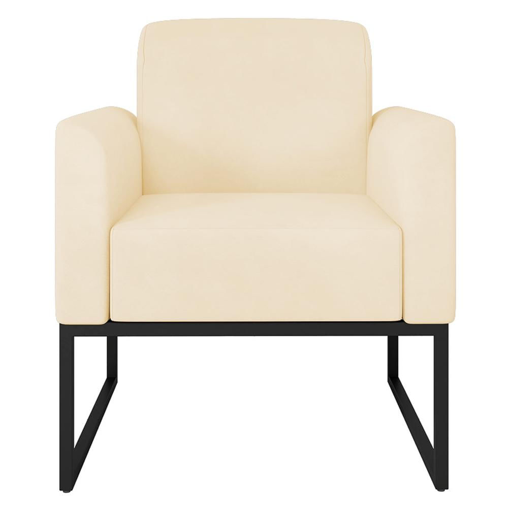 Poltrona Decorativa Isabella Base Industrial Suede Bege/Preto - Gran Belo