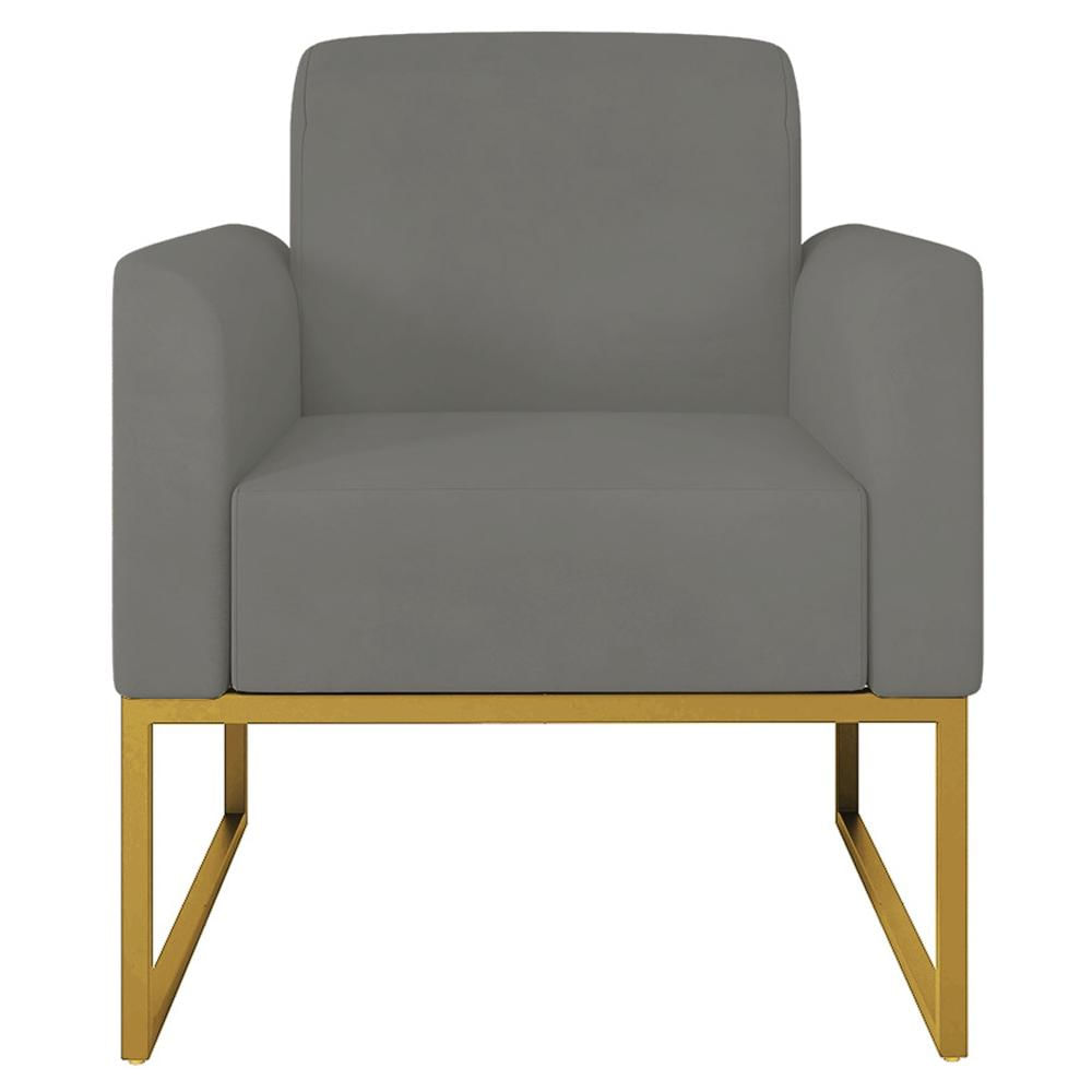 Poltrona Decorativa Isabella Base Industrial Suede Grafite/Dourado - Gran Belo