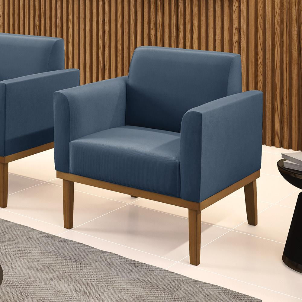 Poltrona Decorativa Isabella Pés Fixo em Madeira Castanho Suede Azul Marinho G19 - Gran Belo