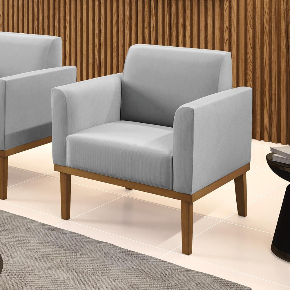 Poltrona Decorativa Isabella Pés Fixo em Madeira Castanho Suede Cinza G19 - Gran Belo