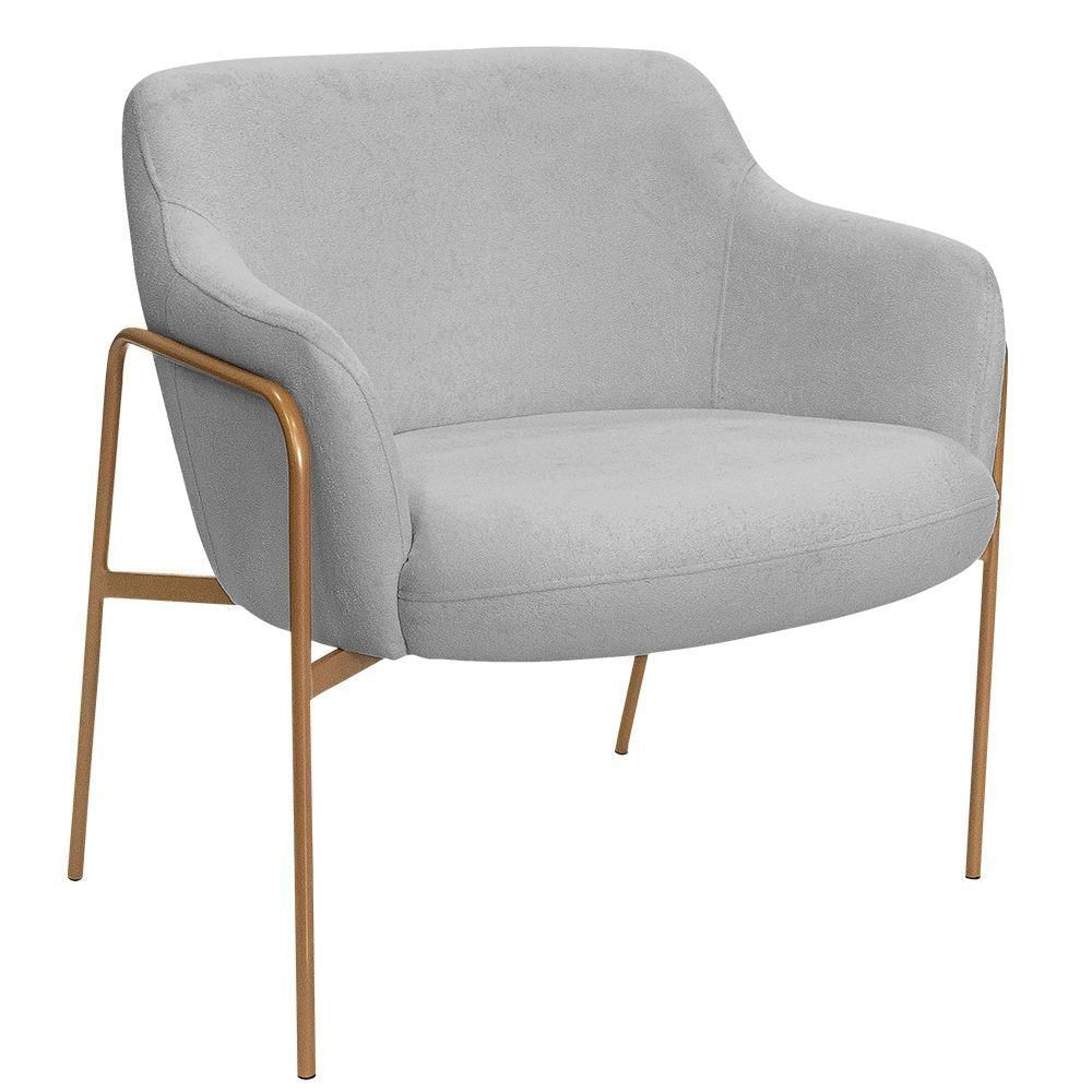 Poltrona Decorativa Jade Base Aço Ouro Fosco Bouclé Cinza Claro - Nexta Casa
