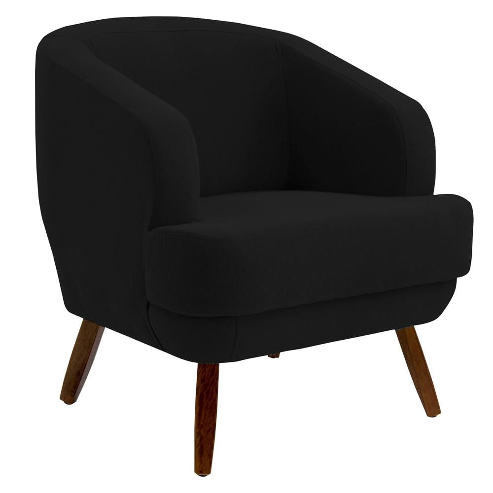 Poltrona Decorativa Jericó Pés de Madeira Veludo Preto - Gran Belo