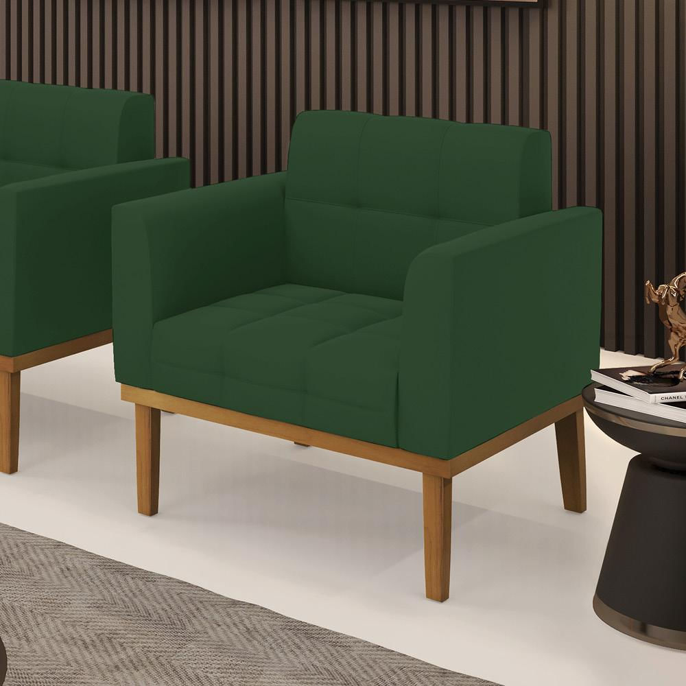 Poltrona Decorativa Karen Pés Fixo em Madeira Castanho Veludo Verde Esmeralda G19 - Gran Belo