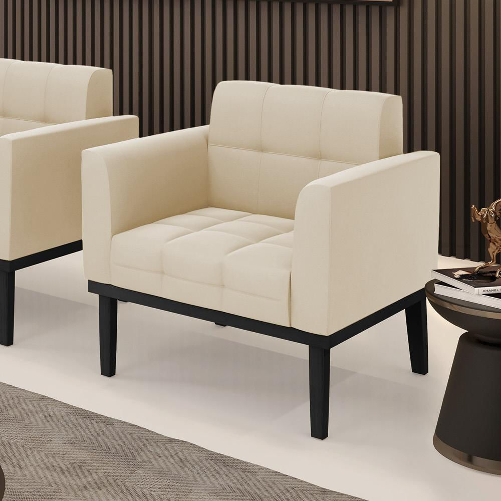Poltrona Decorativa Karen Pés Fixo em Madeira Preto Suede Bege G19 - Gran Belo