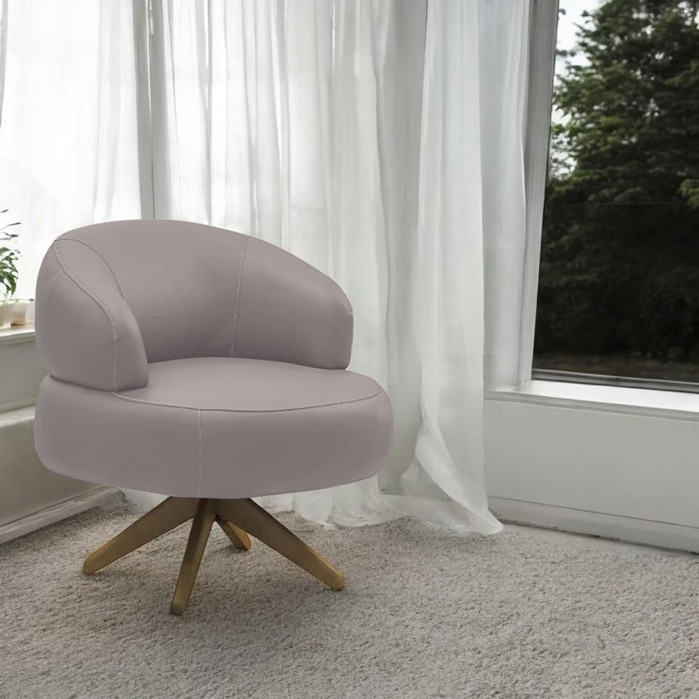 Poltrona Decorativa Katy Sala De Estar Base Giratória Em Madeira Couro Avelã G88 - Gran Belo