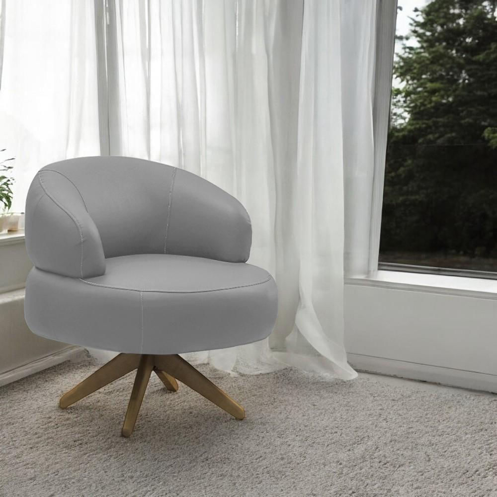 Poltrona Decorativa Katy Sala De Estar Base Giratória Em Madeira Couro Grafite G88 - Gran Belo