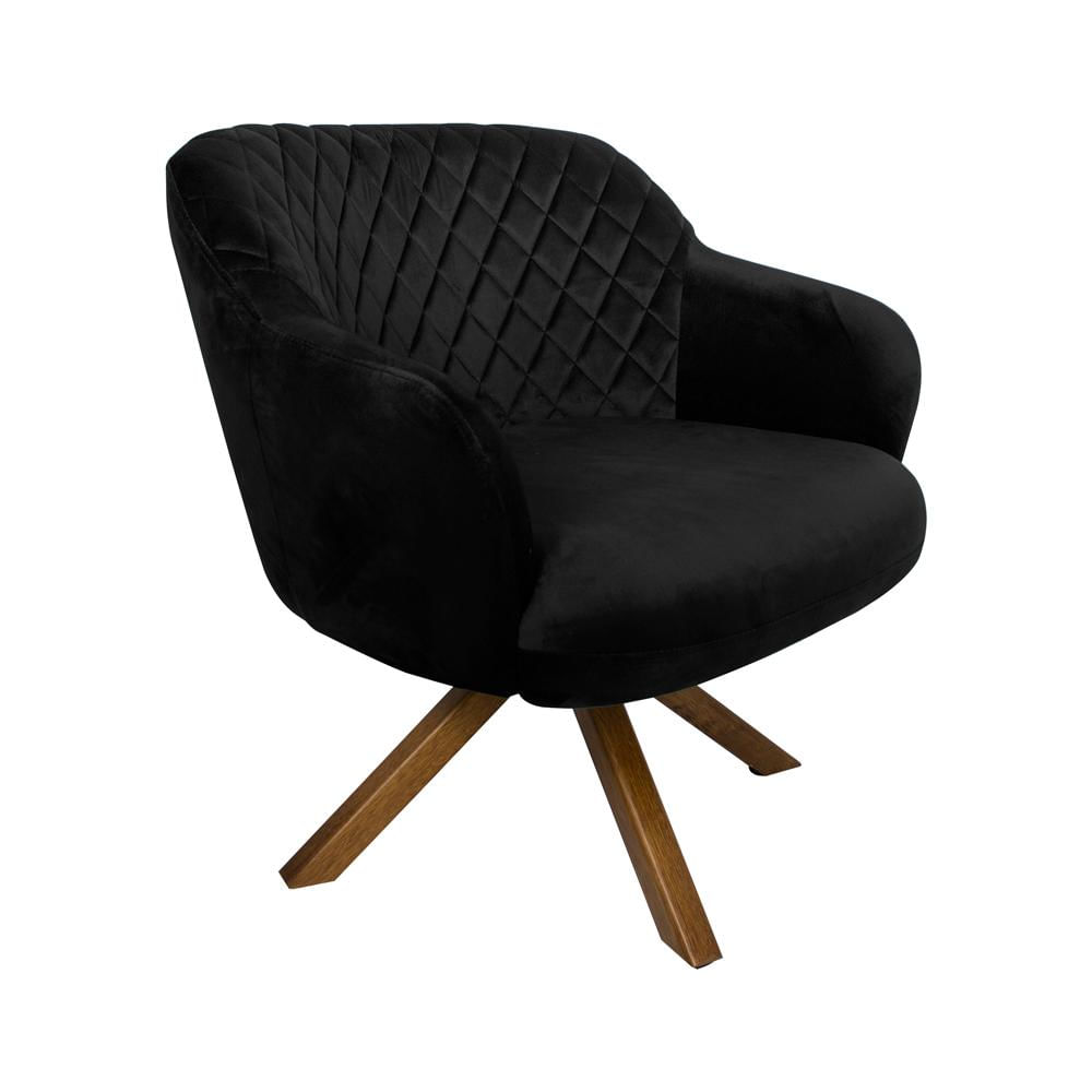 Poltrona Decorativa Kitana Pés Madeira Giratório Veludo Preto - Gran Belo