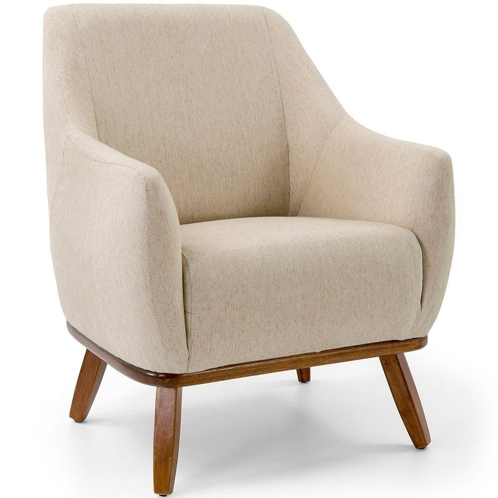Poltrona Decorativa La Paloma Base Madeira Linho Bege - Nexta Casa