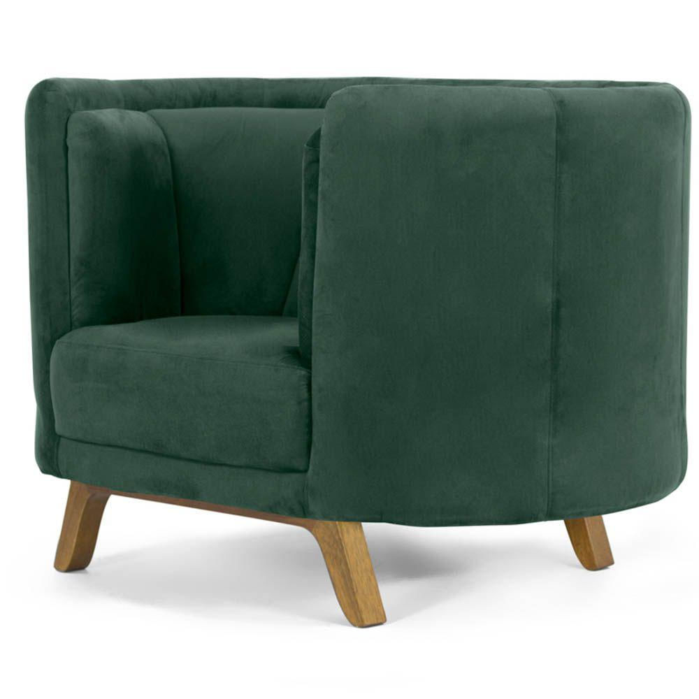 Poltrona Decorativa Para Sala de Estar Base de Madeira Ferrara Veludo Verde - Gran Belo