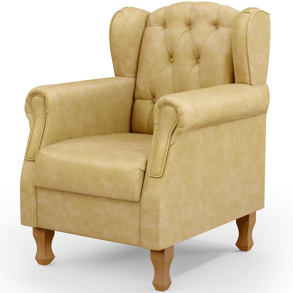Dimensões da Poltrona (L x A x P) 68 x 98,5 x 72 cm Altura do chão ao assento: 45 cm Altura do encosto: 58 cm Profundidade do assento: 50 cm Altura dos Braços: 20 cm Largura do assento: 49 cm Características: Estrutura em madeira de reflorestamento de eucalipto, pinus e MDF; Revestimento em Couríssimo na cor Fendi de alta qualidade; Assento com espuma D-23; Encosto com espuma D-20; Braço com espuma D-20 com tratamento anti-mofo; Percinta elástica de Nylon; Peso suportado até 120 kg; Pés em formato Luis XV; - Por se tratar de estofado as medidas podem ter uma pequena variação de até 3 cm. - A tonalidade do produto real poderá ter ligeira variação devido o lote de tecidos. Observações importantes: - Produto para uso residencial em ambiente interno, não devendo ficar exposto diretamente ao sol, calor e umidade excessivos. - Pode haver alguma diferença de tonalidade entre a imagem e o produto real, por conta do tratamento de imagens e a calibração de cores do seu monitor. - As imagens são meramente ilustrativas, não acompanham objetos de decoração e eletrônicos. - Ao receber a mercadoria, o cliente deve verificar as condições da embalagem, caso haja alguma avaria não assine o comprovante de recebimento. - Montagem, desmontagem e outras instalações serão de responsabilidade do cliente. Não nos responsabilizamos, no ato da entrega, por subir escadas/elevadores ou pelo transporte por guincho em apartamentos. Eventuais despesas são de responsabilidade do comprador. - Confira as dimensões do produto e certifique-se de que passará normalmente por supostos elevadores, portas, escadas e/ou corredores de sua residência.