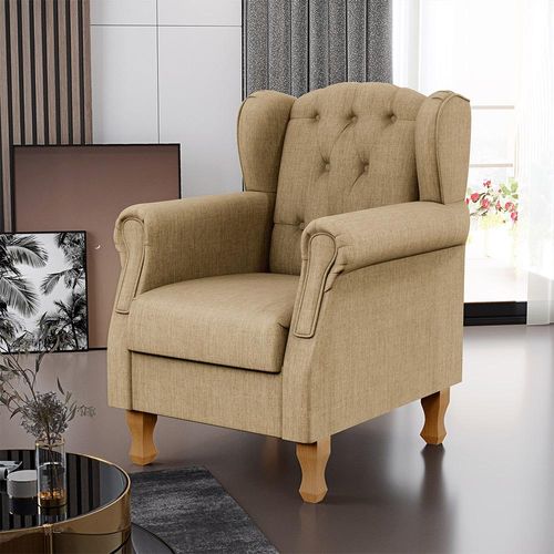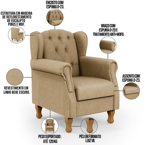Poltrona Decorativa Para Sala De Estar Yara P02 Linho Bege Escuro - Lyam Decor