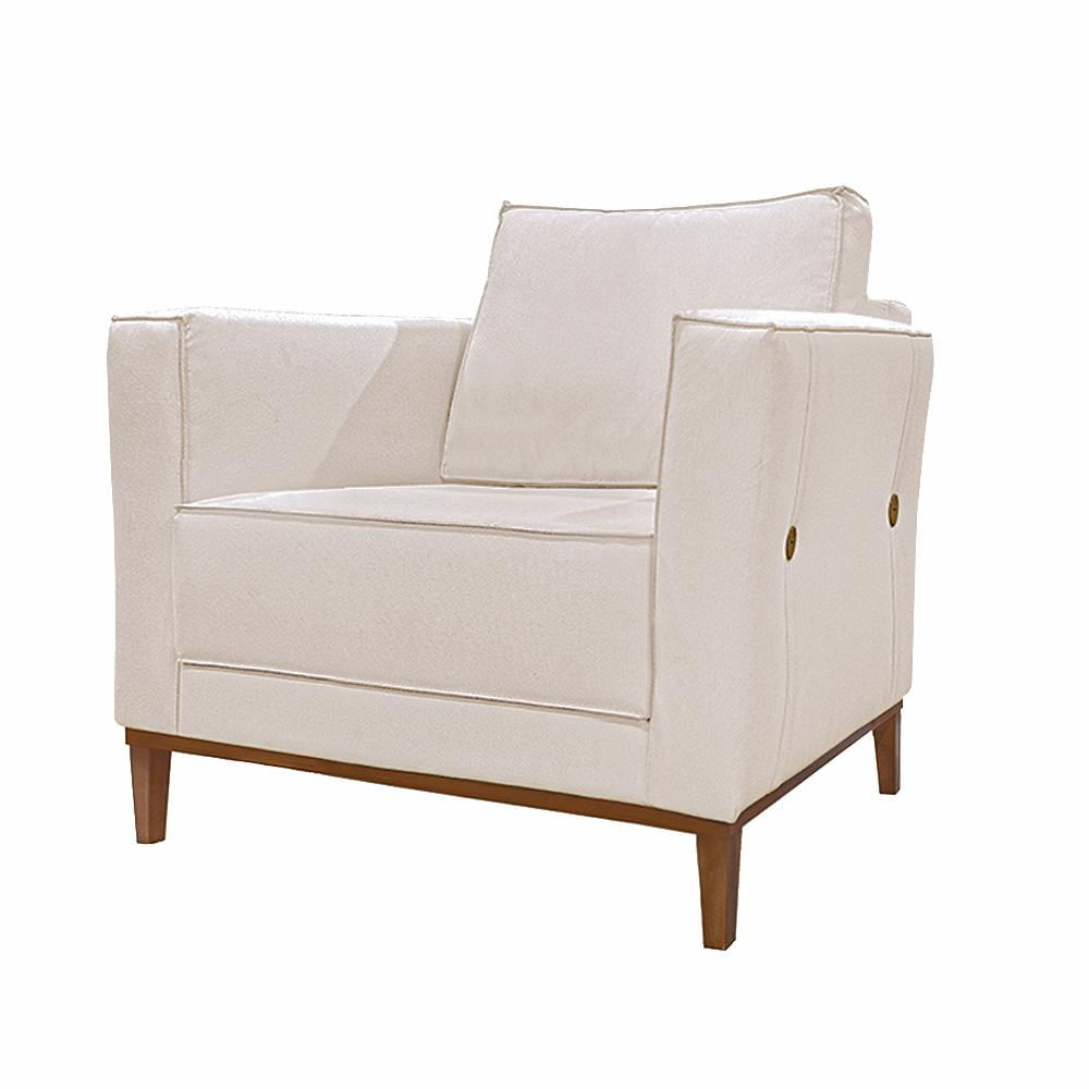 Poltrona Decorativa Pés em Madeira Tarantino Linho Pérola - Gran Belo