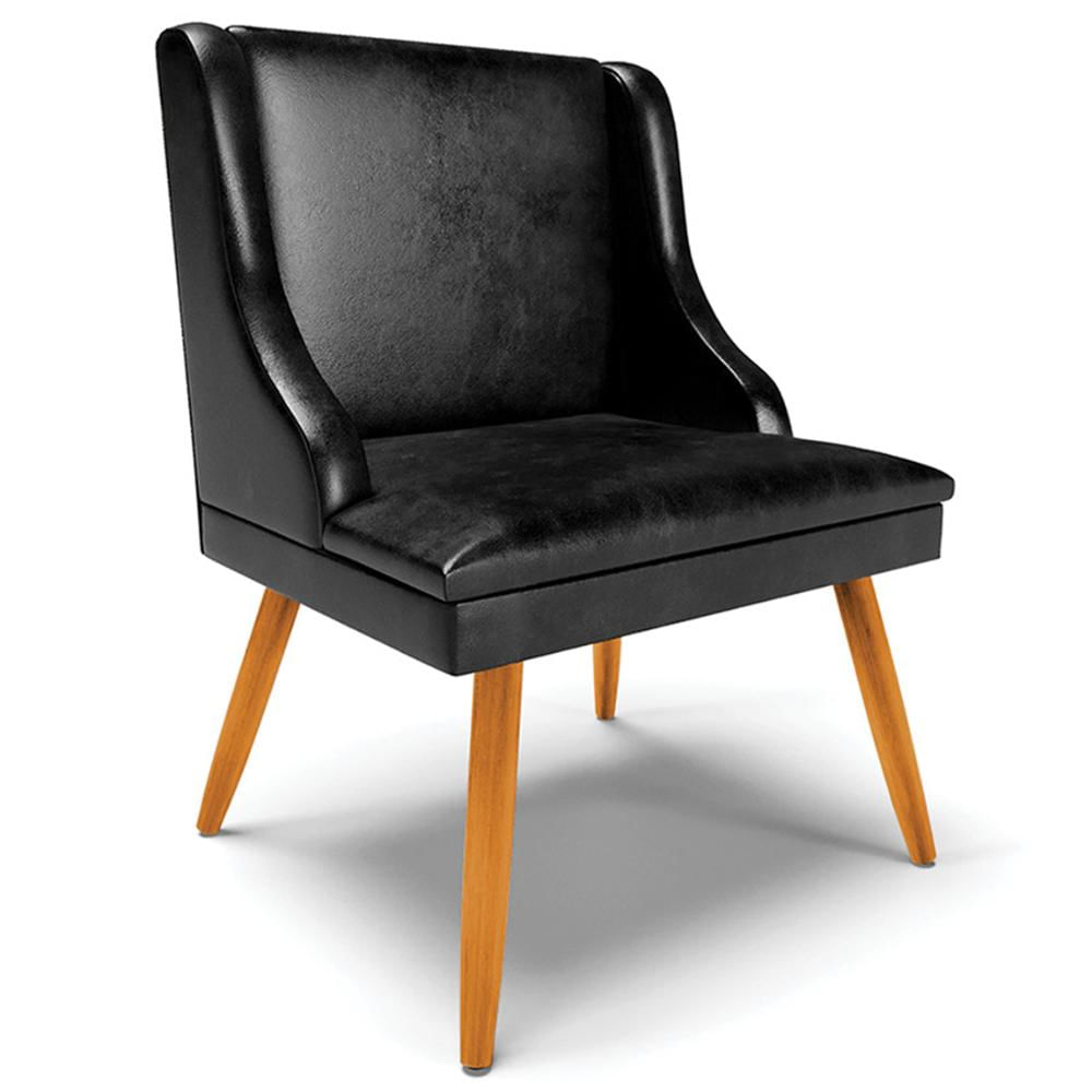 Poltrona Decorativa Pés Palito de Madeira Firenze PU Preto Brilho/Natural - Gran Belo