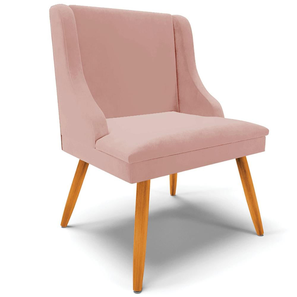 Poltrona Decorativa Pés Palito de Madeira Firenze Veludo Rosê/Natural - Gran Belo