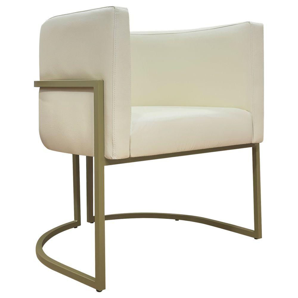 Poltrona Decorativa Recepção Luna Corino Cores Base De Ferro Champagne - Bege, Corino