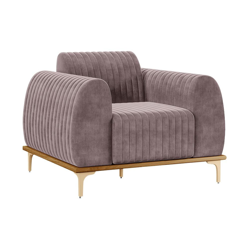 Poltrona Decorativa Sala de Estar Base de Madeira Euro Veludo Rosê - Gran Belo