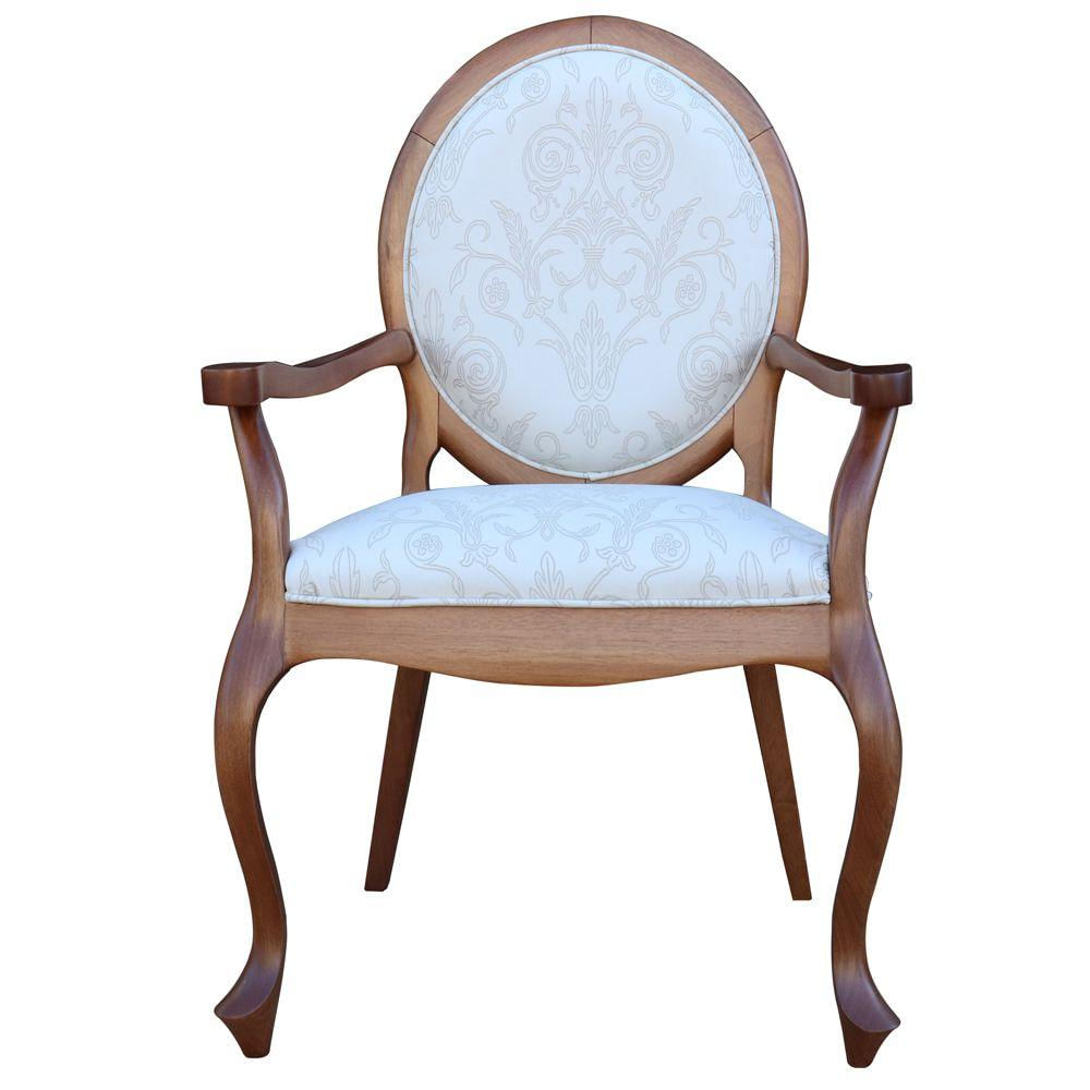 Características do Produto: Material da Estrutura: Madeira Maciça de Jequitibá; Encosto: Estofada; Assento: MDF e Espuma D-26; Material dos Pés: Madeira Maciça; Quantidade de Pés: 4; Tipo de Pés: Fixo; Revestimento: Sarja com Bordado; Peso Suportado: 120Kg; Conteúdo da Embalagem: 1 Poltrona; Necessita de Montagem: Não; Instruções/Cuidado: Utilizar um pano levemente umedecido com água, seguido de pano seco. Evitar exposição ao sol, para que o produto não sofra alterações na cor. Não limpar com escovas ou produtos abrasivos.