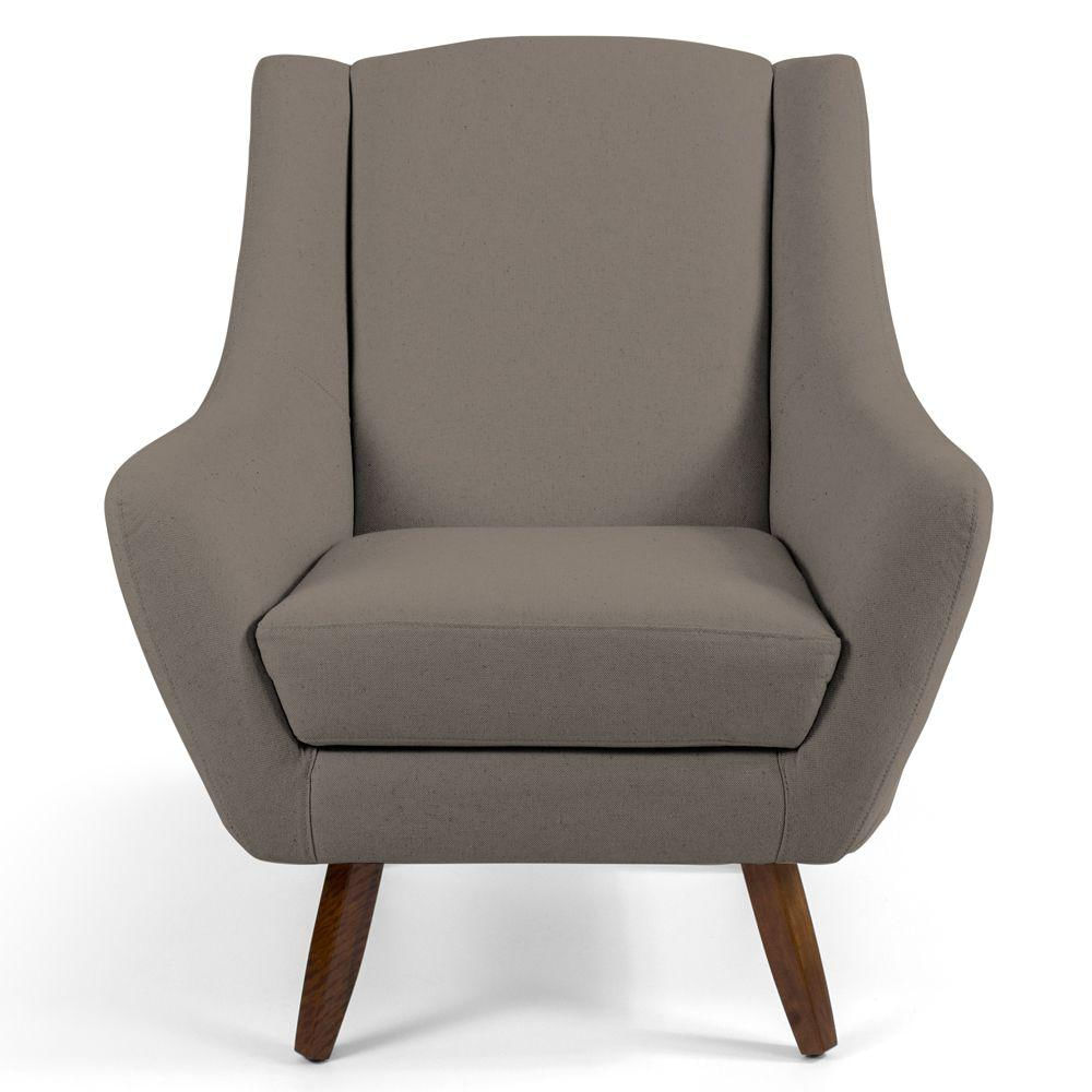 Poltrona Decorativa Sala de Estar Pés de Madeira Naomi Veludo Bege - Gran Belo