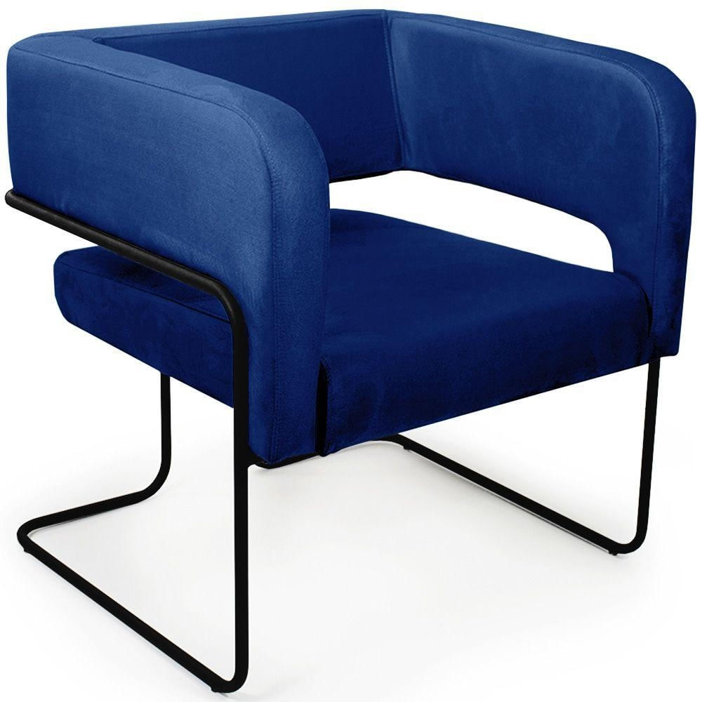 Poltrona Decorativa Scarlett Base Aço Preto Veludo Azul Royal - Nexta Casa