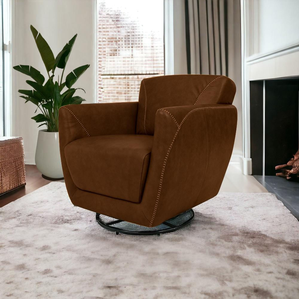 Poltrona Decorativa Valentina Sala de Estar Giratória Couro Marrom Chocolate Manchado G40 - Gran Belo