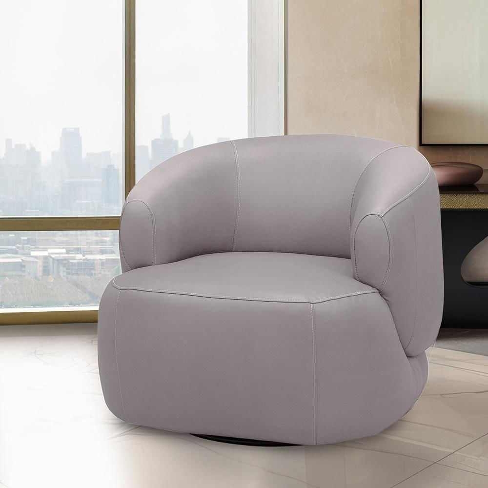 Poltrona Decorativa Verona Sala De Estar Base Giratória Em Aço Couro Avelã G88 - Gran Belo
