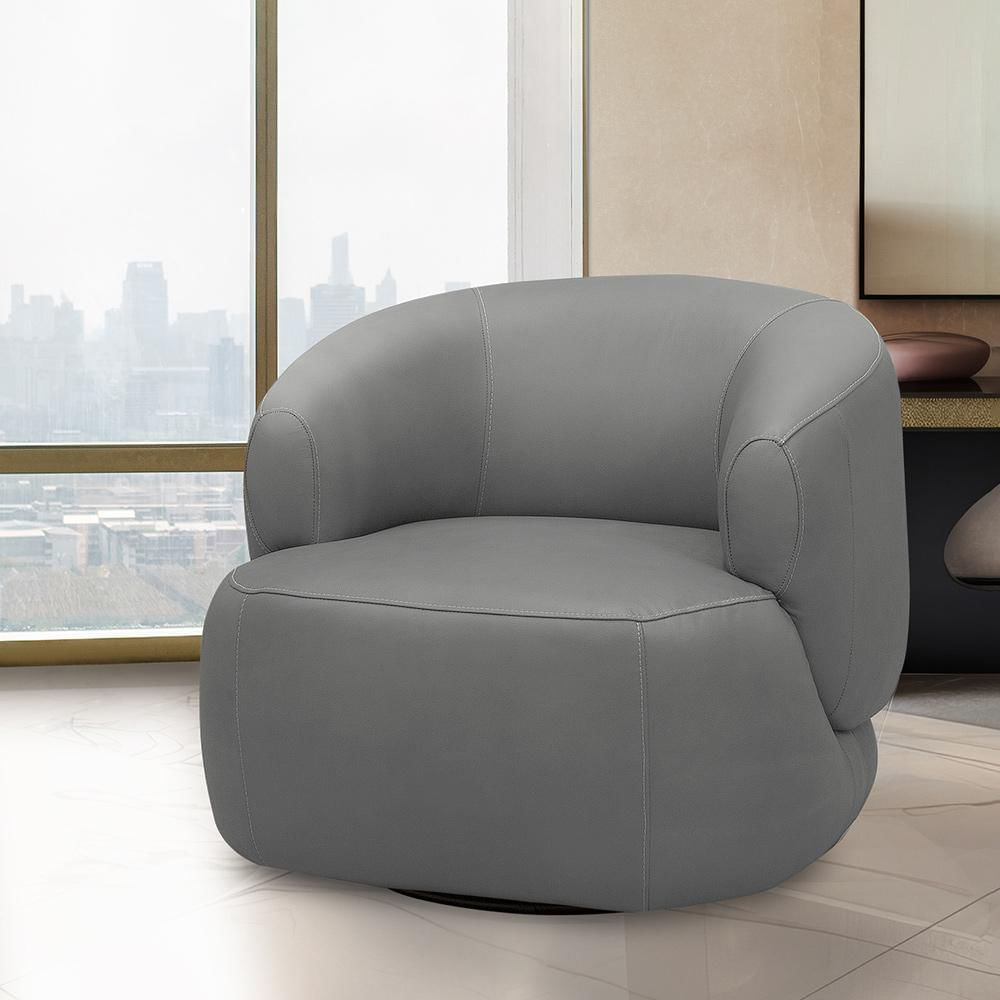 Poltrona Decorativa Verona Sala de Estar Base Giratória em Aço Couro Grafite G88 - Gran Belo