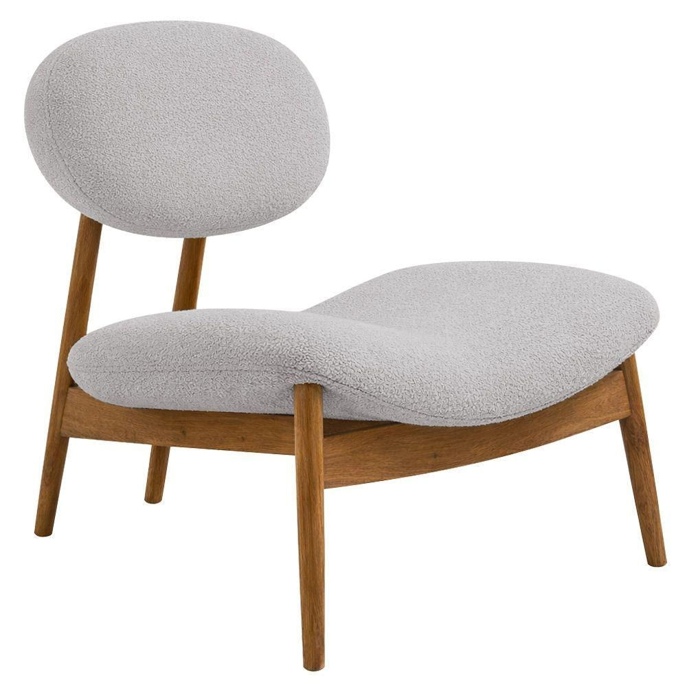 Poltrona Decorativa Yves Base Madeira Castanho Bouclé Cinza Claro - Nexta Casa