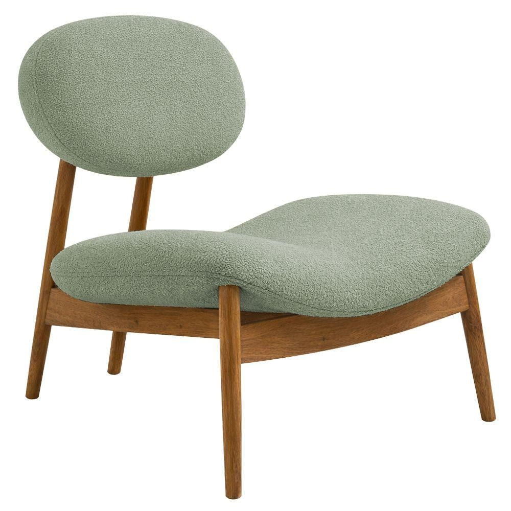 Poltrona Decorativa Yves Base Madeira Castanho Bouclé Verde Claro - Nexta Casa