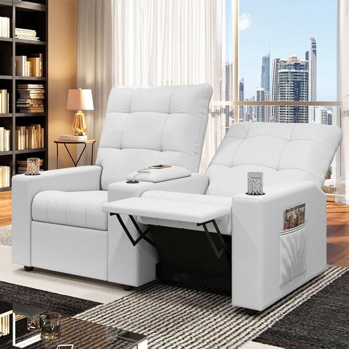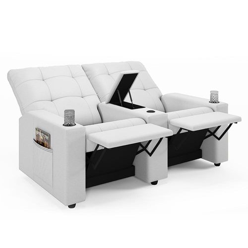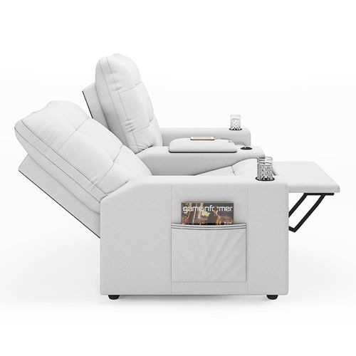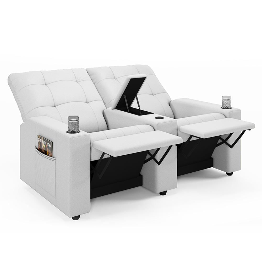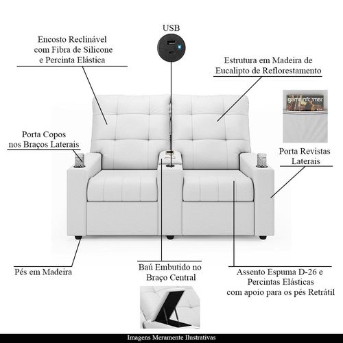 Poltrona do Papai Reclinável Cinema 2 Lugares Manual Baú USB Haifa F05 Facto Branco - Lyam Decor