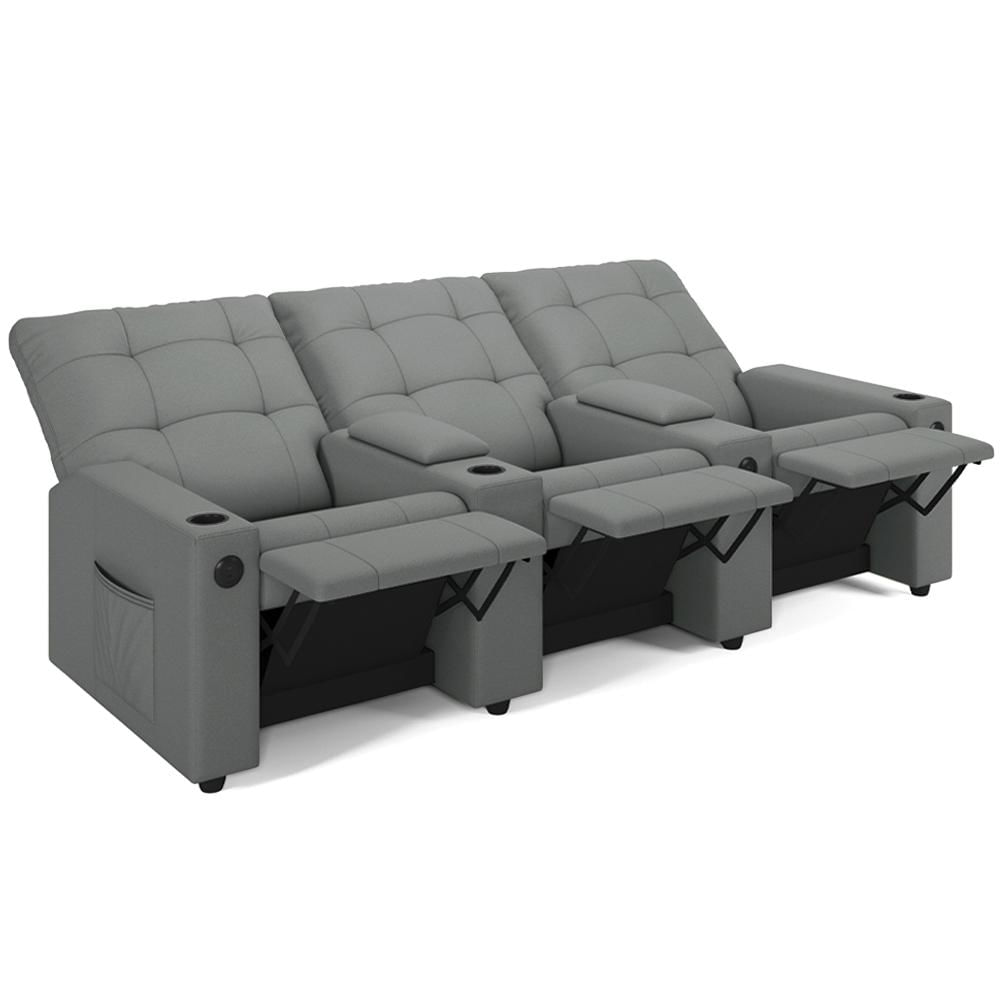Poltrona do Papai Reclinável Cinema 3 Lugares Manual Baú USB Haifa F05 Facto Cinza - Lyam Decor