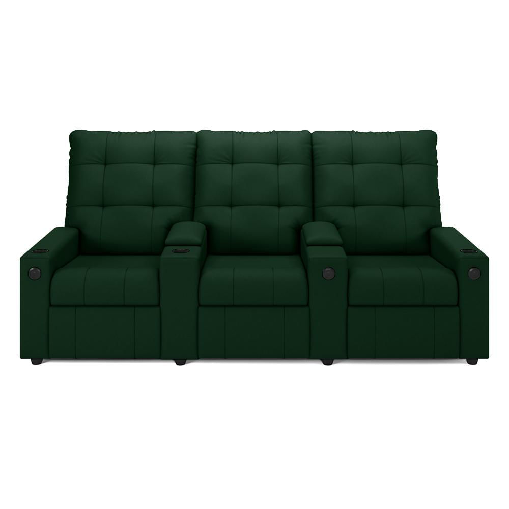 Poltrona do Papai Reclinável Cinema 3 Lugares Manual Baú USB Haifa F05 Veludo Verde E - Lyam Decor