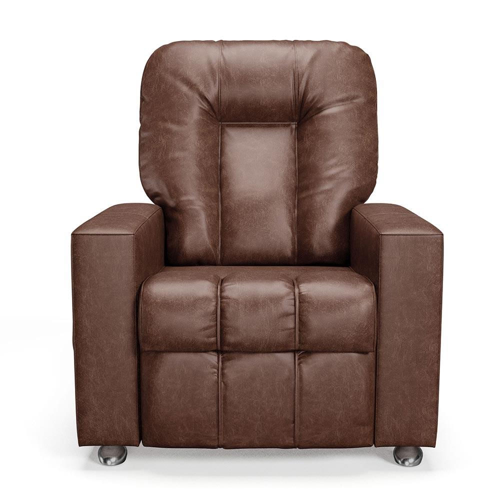 Profundidade Aberto: 148 cm Altura do Encosto: 70 cm Altura do Assento: 45 cm Largura do Assento: 52 cm Profundidade do assento: 50 cm Características: Estrutura em madeira de reflorestamento de eucalipto. Encosto reclinável com fibra siliconada e percintas elásticas. Assento reclinável com espuma D-26, soft e percintas elásticas. Braça com espuma D-20. Possui mecanismo de 02 estágios e 03 posições. Contém porta copo nas braças e revisteiro na lateral. Pés em madeira revestidos em alumínio. Revestimento em Facto na cor Marrom. Suporta 110 Kg por assento. - A tonalidade do produto real poderá ter ligeira variação devido o lote de tecidos. - A limpeza deve ser feita com pano levemente umedecido em água limpa, sem esfregar, não utilizar produtos abrasivos, desengordurantes, álcool ou solvente.. Observações importantes: - Produto para uso em ambiente interno, não devendo ficar exposto diretamente ao sol, calor e umidade excessivos. - Pode haver alguma diferença de tonalidade entre a imagem e o produto real, por conta do tratamento de imagens e a calibração de cores do seu monitor. - As imagens são meramente ilustrativas, não acompanham objetos de decoração e eletrônicos. - Ao receber a mercadoria, o cliente deve verificar as condições da embalagem, caso haja alguma avaria não assine o comprovante de recebimento. - Montagem, desmontagem e outras instalações serão de responsabilidade do cliente. Não nos responsabilizamos, no ato da entrega, por subir escadas/elevadores ou pelo transporte por guincho em apartamentos. Eventuais despesas são de responsabilidade do comprador. - Confira as dimensões do produto e certifique-se de que passará normalmente por supostos elevadores, portas, escadas e/ou corredores de sua residência.