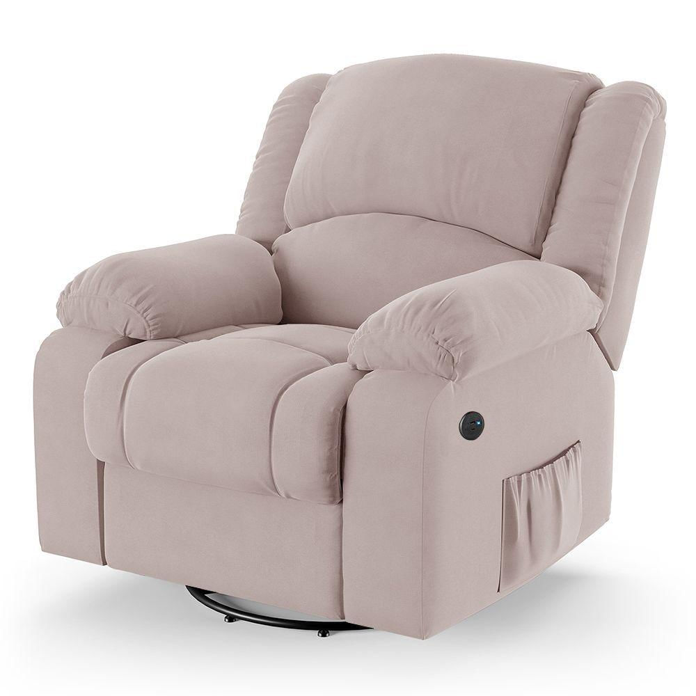 Poltrona Do Papai Reclinável Melim Glider Giratória Usb Veludo Rosê Fh1 - D'rossi