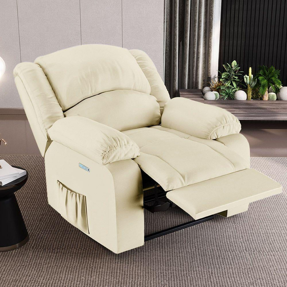 Poltrona Do Papai Reclinável Sala De Cinema Madrid Elétrica Touch Massagem Usb Pu Bege G26