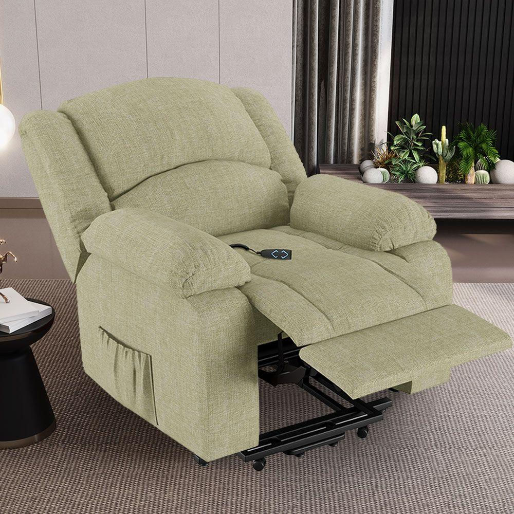 Poltrona Do Papai Reclinável Sala De Cinema Madrid Elevação Lift Elétrico Linho Bege G26