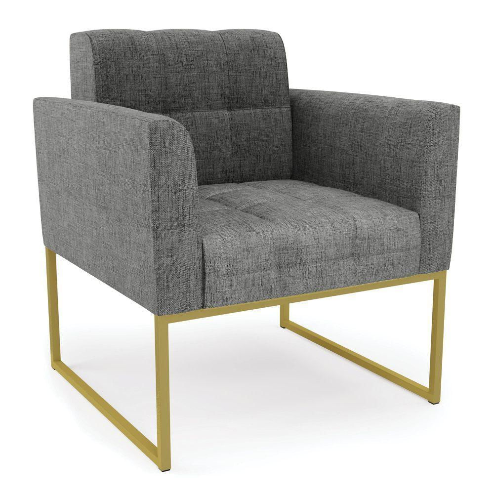 Poltrona Elisa Linho Grafite A26 Base Metálica Industrial Dourada - D'rossi