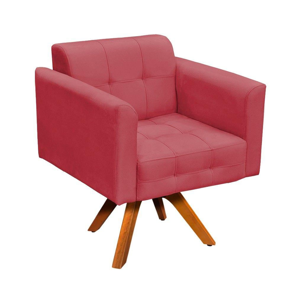 Poltrona Giratória Elisa Suede Base Madeira Mm30 D´rossi -rose